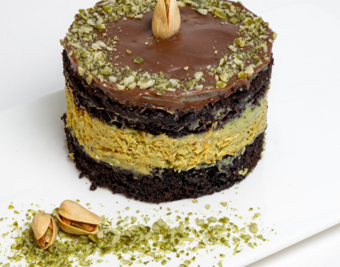 Choux Pastry filled with Ashta cream made of heavy cream and Orange Blossom flowers and topped with shredded phyllo dough and rose petals.